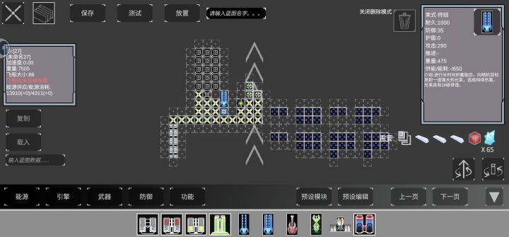 主要讲讲我对蓝图的理解首先,我认为蓝图艺术分为两种,一种就是最简单的好看,给人赏心悦目的美感,另一种就是这个攻略要讲到的,尽可能使每一个方块作用最大化,利用尽可能少的方块,打造【最强悍,最实用,最全能】的战舰当然有很多制造蓝图的小技巧我可能还没有发现,毕竟我也是这两天突然顿悟了数个技巧实现了百格单舰通关极限测试,所以如果有本篇攻略没有提到的技巧,欢迎评论区补充稍微讲一讲百格单舰通关极限测