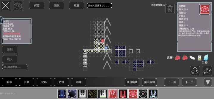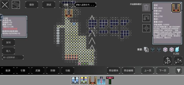 在这次更新中不仅增加了更多模块,蓝图功能也更实用了。如图所示蓝图中新增的模块按如图顺序使用可以复制框定范围内不包括核心部分的模块为全局模板,可以在其它蓝图中使用。新版本中复制蓝图被该功能替代了。#方块战舰