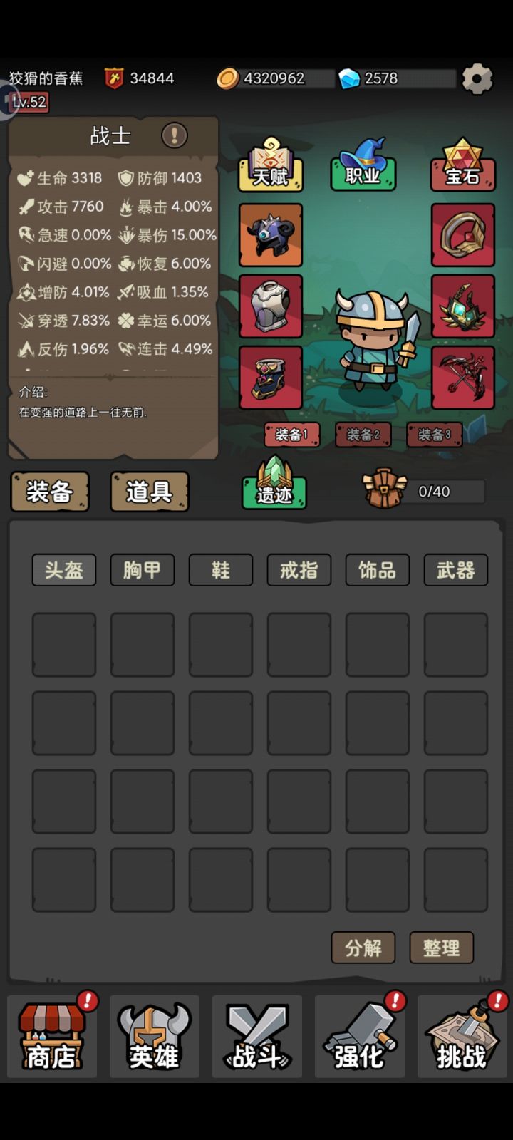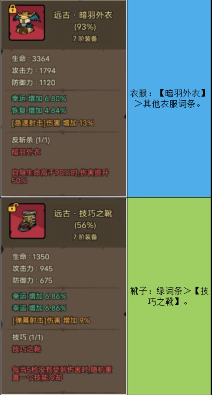 1.41版本装备选择(个人观点,不代表最优选择)写在开头的话:攻略解决不了你所有问题,但狗可以,只要你真的狗,什么都不是事。一、叠甲1.因为装备属性的随机性太大,最终效果根据自己实际情况测试为准。2.本攻略适合遗迹阶段选择,并不是起步阶段直接照抄,起步阶段可以用战士过渡,因为很多装备增强,初期难度降低很多,一般不存在卡点。二、属性选择标准1.武器战宠物:暴击急速连击技能:挥击 投