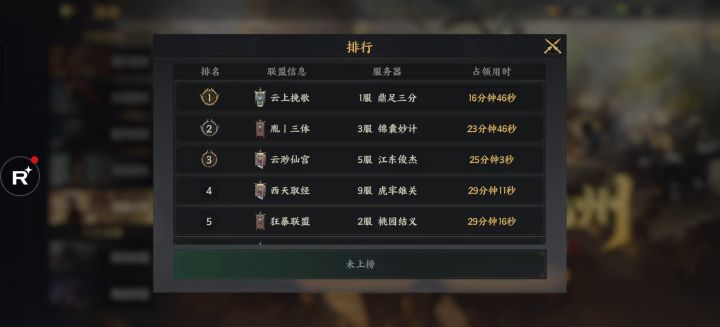 《云上挽歌》两次霸业、全服洛阳竞速第一。