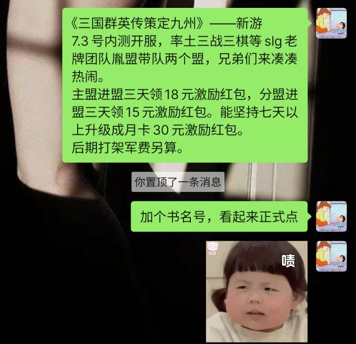 公会福利:落地带马甲报销首充 每周战功榜前三月卡 战力冲榜前十128 前三328 管理每月报销双月卡 我们有全方位无死角的专业老玩家教学,帮助每一位新手快速成为游戏大神。 我们有专业指挥专业管理,让每一位成员都能体验到战场冲锋的乐趣。 欢迎每一位兄弟加入我们。#三国群英传策定九州