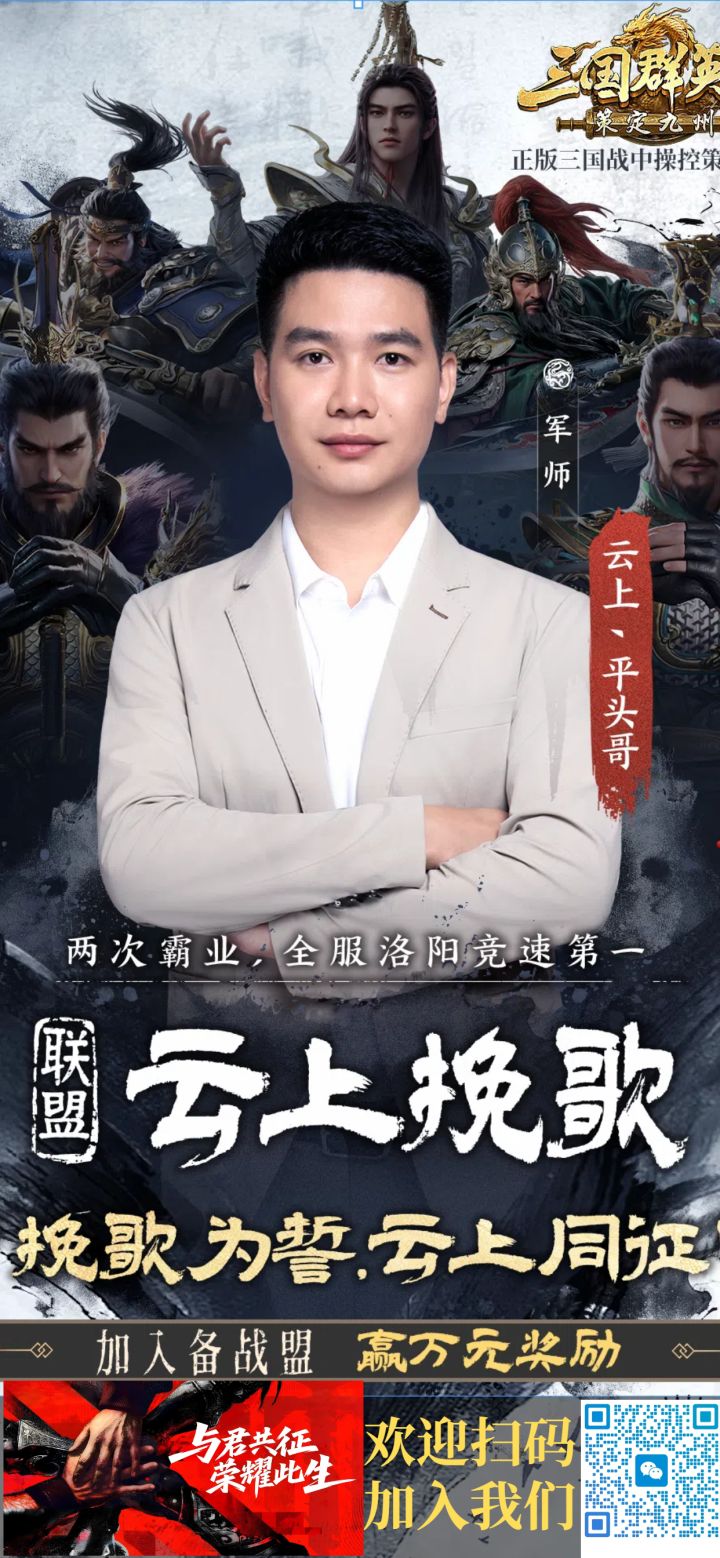 真正想好好玩下去,活跃的肝帝,有实力的高战,您请多看看这里。欲招天下有志之士,共谋天下,若有志于天下者。不论出身,不问过往,但有勇力与智谋,皆可来投,云上挽歌现诚邀你的加入。#三国群英传策定九州