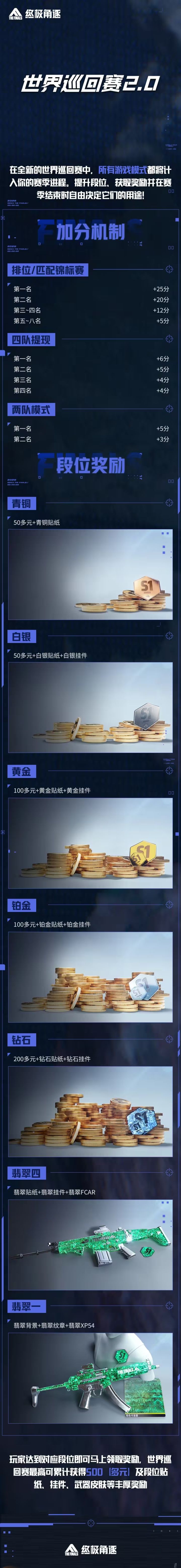 所有模式均可加分,国服奖励玩家达到对应段位即可马上领取奖励,世界巡回赛最高可累计获得500【多元】及段位贴纸、挂件、武器皮肤等丰厚奖励~了解更多详情请查看长图#终# 极角逐上场即炸场