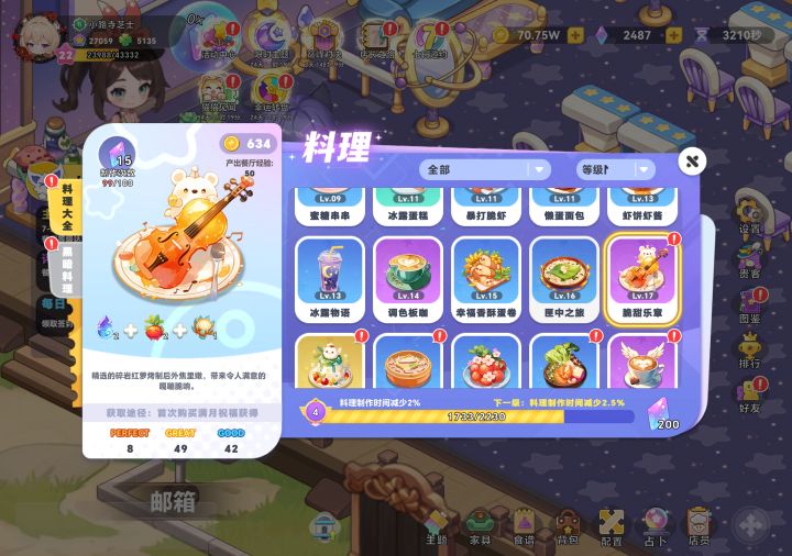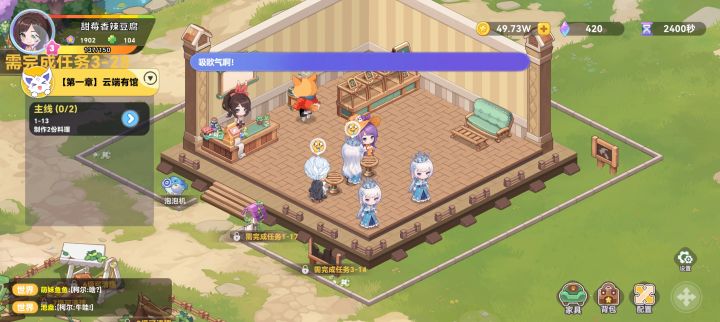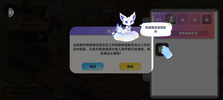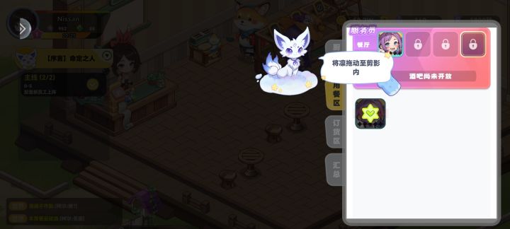 1.主题的图鉴红点不消失的问题没了,但料理图鉴的红点又有问题了,料理大全和黑暗料理会同时亮红点,但其实只有一个板块有需要点击领取钻石的菜品,且出现未达到领取条件但是亮红点的情况P12.建议服务员也像厨师一样,酒吧餐厅分开,来回跑又慢,还经常同时有两三个服务员一起跑到酒吧逛街的情况,同时发现【千夏】偶尔出现在酒吧只晃悠不点单不上菜的情况3.如图所示,UI还是需要改动,根本看不见字P24.会出现