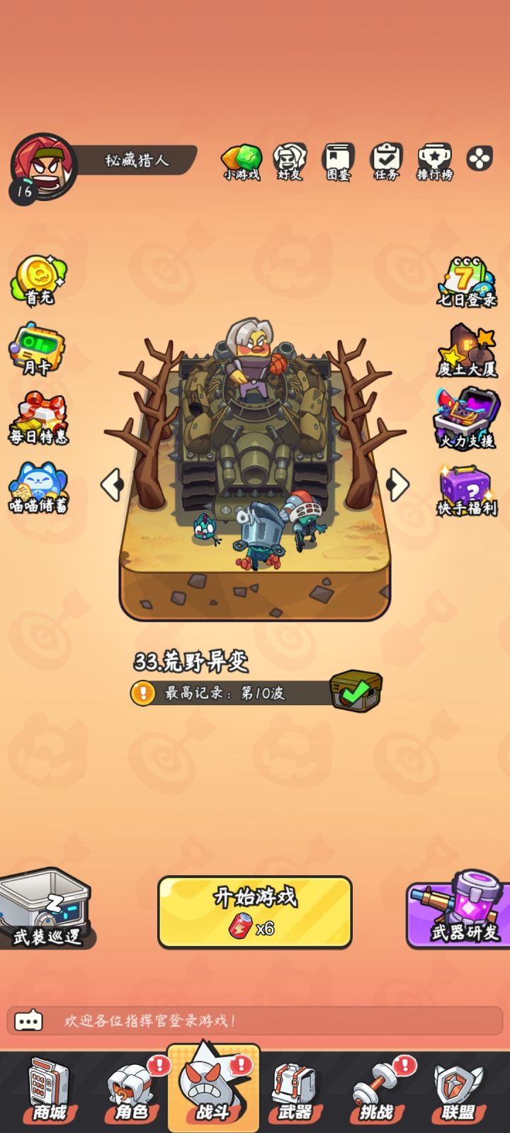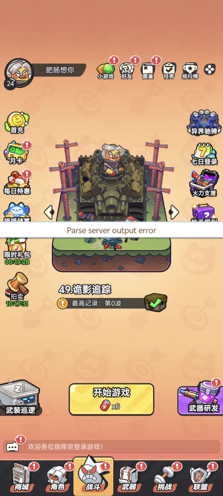 更新出bug了体力也看不见。武器研发也进不去。也没人管。
