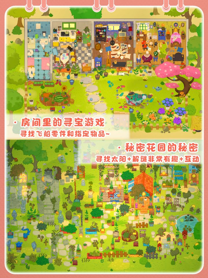🖼️小小冒险家寻宝记·第1关支线-秘密花园的秘密,塔塔来到一座荒废已久的花园,发现了封印在石像里的猫猫,通过收集足够的阳光和找到相关物品,让花园恢复生机~❀游戏内的光影和色调会跟随时间的变化而变化,音乐也好听很治愈~🐱这一关有7个互动解谜小场景,都标注在p5啦~#小小冒险家寻宝记 #发现好游戏 #今天游戏圈发生了啥