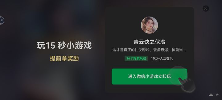 玩到第二关让我看广告 看广告看吧 让我切换微信去玩微信小程序游戏 微信小程序游戏卡的要命 终于玩到了规定时间退出后再进原来游戏显示我没看广告🥲🥲🥲