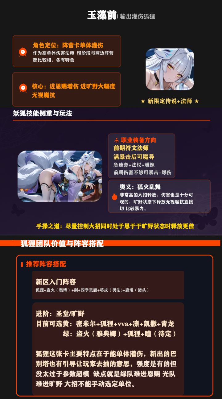 「绝代妖狐·玉藻前」现已登场!我对玉藻前的爱,永远赤诚而热烈!收下攻略,直接速推!玉藻前详细攻略及配队思路↓↓↓礼包码:九尾轻扫风月技能解析与装备推荐妖狐果然会魅惑人心>>技能解析与阵容搭配<<旷野/圣堂双阵营法师,以奥义为核心爆发手段,通过叠加天赋标记偷取目标魔防,以狂野与恩赐双状态强化自身,同时具备魅惑控制能力,是具有超高爆发手段的输出核心。天赋【摄魂夺魄】通过持续攻击同一目