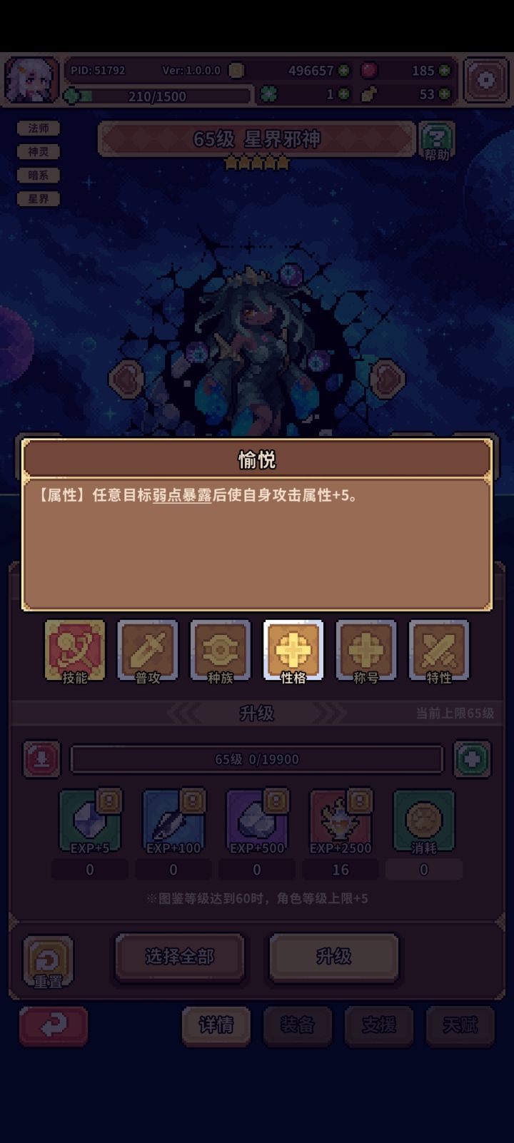 《幻想少女公会》是一款像素风放置卡牌RPG手游。 你将扮演一位异世界冒险公会的经营者,负责招募和养成超过100位各具特色的魔物少女,通过策略搭配阵容、收集装备,带领她们探索幻想世界。 作为一名经历了多次内测的忠实邪神玩家,我也是第一时间带来了邪神的开荒教程。 首先先介绍一下阵容组成 邪神 水晶菇 黄金之女 这三位魔物娘只有邪神是比较难获取的角色(首充就送),其余两位均为常规池角色,可以轻