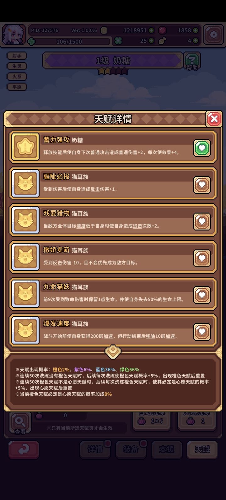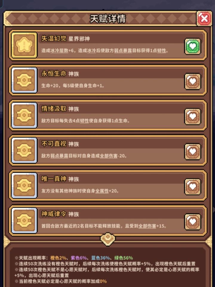 橙色天赋为心愿天赋为什么一直都是0,之前刷出过不止十个橙色天赋,这个概率还是没有变化