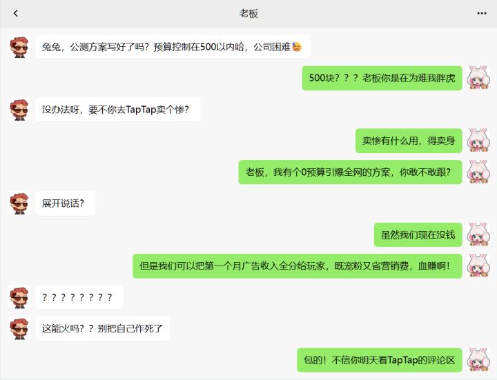 事情就是这个样子咱们游戏就要上线了可小厂没啥宣发预算啊所以现在来求支援了!萌友们觉得这个分红活动方案咋样?觉得香的评论区回复“包火的”毕竟老板还在观望方案过了,首月广告收入一分不留全给大家分!#兔小萌世界 #兔小萌世界0115公测 #兔小萌世界公测 #新游预约