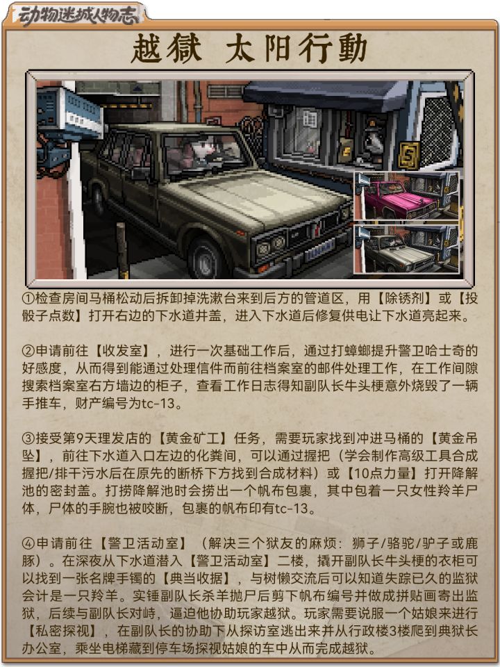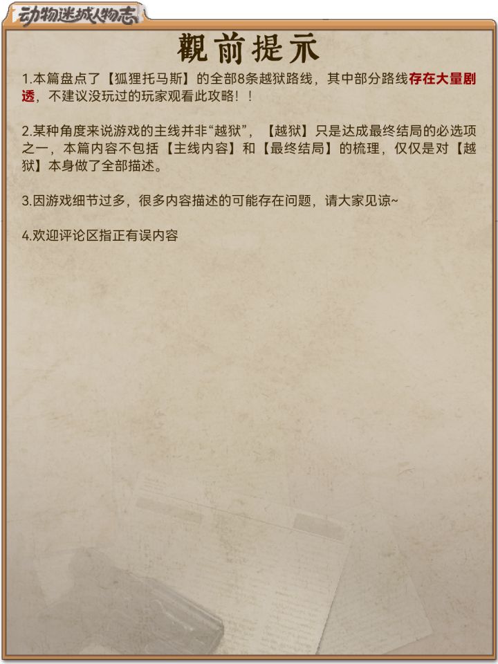 《动物迷城》正式版上线在即(7月18日),其中的重点主要是新角色黑豹,而我们的“老朋友”托马斯其实已经陪伴了大家很久了,在这里也是给大家整理出来了当下全部的狐狸越狱路线~如果你已经淡忘了或者通关过几次好奇其他路线,那么欢迎查看此攻略~⚠️但是如果你还没有体验过游戏或正在体验游戏,那我非常不建议你提前看本篇攻略。毕竟游戏开简单模式,加上读档大法几乎没难度,游戏剧情还是自己品更有味~攻略如有错误