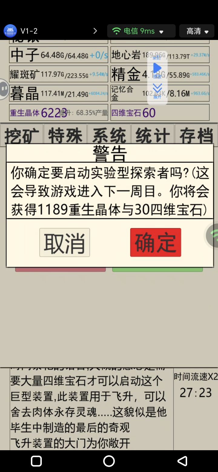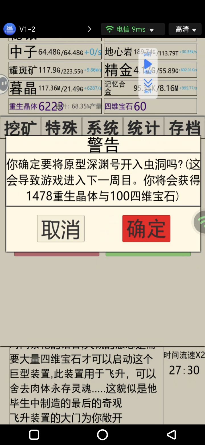 记忆合金,换赛道了,软妹币和科技用不完,前面的进度快多了,就是飞升连晶体和四维都不给