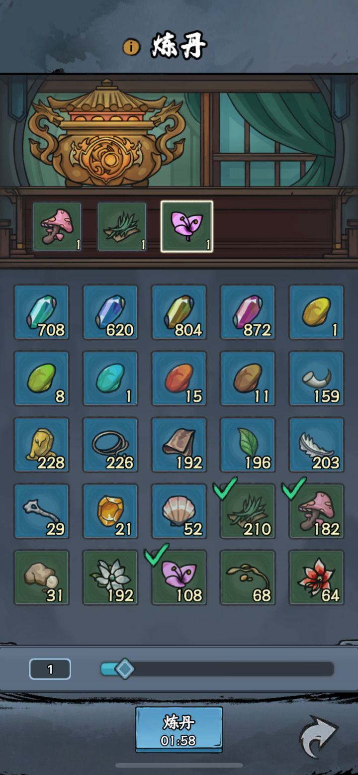 角色UID:20281757; 打分(80分);丹道称号:渣渣灰圣;草和粉蘑菇+任意1药材,大概率出15+以上的药渣,每天固定换炉子