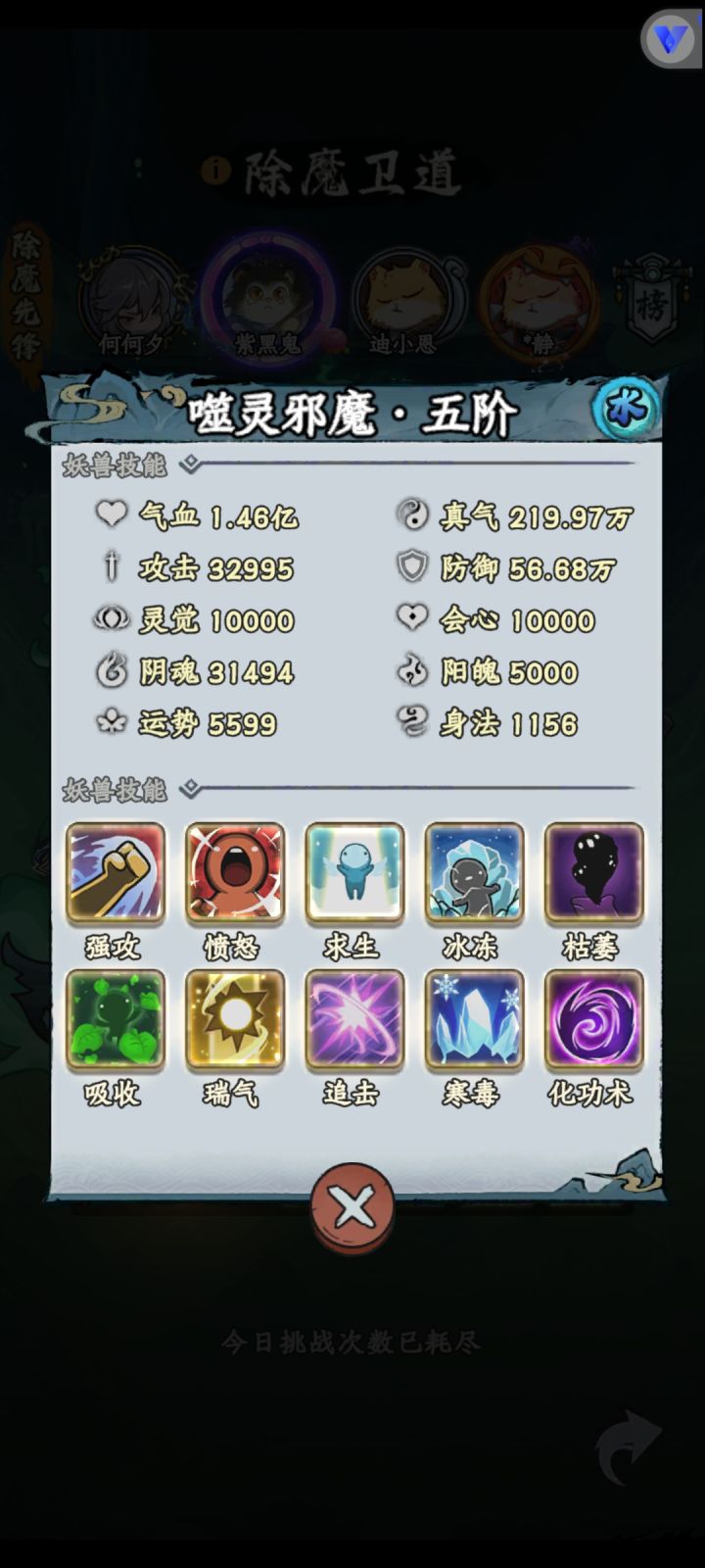 每天boos属性变换,每天能出三张除魔符,符推荐留着大克的时候用。UID:20184570烟波台 皮卡超