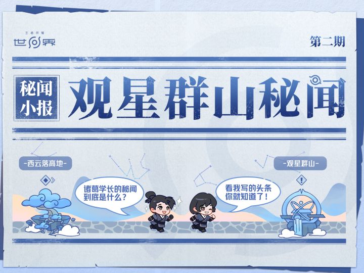 时间冲不散少年英气,作为昔日诸葛亮、周瑜学长的比试场地,观星台仍流传着许多学长们留下的秘闻~正巧秘闻社小编编写了《秘闻小报:观星群山篇》,就让师姐带你品月华,习星术,在云台交错的机关之间,初窥当年的那场对决吧~#王者荣耀世界