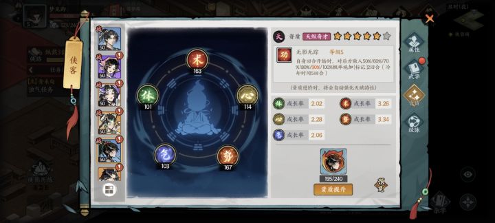 变强的办法,常规的装备和经脉、武学和等级,日常肝一肝就不说了。资质要用元宝抽卡获得,且游戏里可以获得的元宝资源有限,内测这两天大多数抽卡都是靠朝廷的赈灾粮,公测以后自是不必说,充值抽卡。武学的养成系统也有问题,一本武学升到大成要三四百进修录,一天能用银子买到的也就二三十本,也就是按照现在的玩法,如果不靠朝廷赈灾,一个人一种武学正儿八经要肝至少十来天。还有这游戏很缺银两,但是玩了两天我也不知道哪个渠
