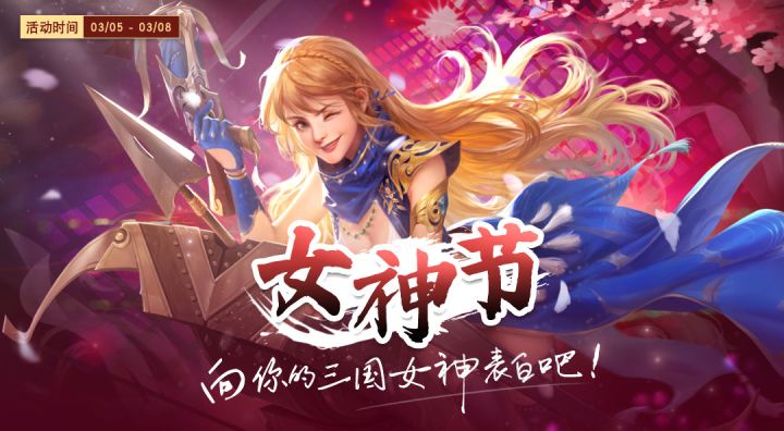 【活动规则】:1. 需在指定社区活动帖下方留言“大区+携带游戏ID+pick的女神武将”2. 言语辱骂或其他不良言论直接删帖,视为无效参与。跟帖示例:游戏平台:专区/安卓所在大区:1角色ID:1234567武将:XXX【活动奖励】:七星石*1+新基础宝石随机包*33+体力包100*3+粮草888参与玩家都可以获得奖励哦~【活动时间】:2021年3月5日-2021年3月8日【