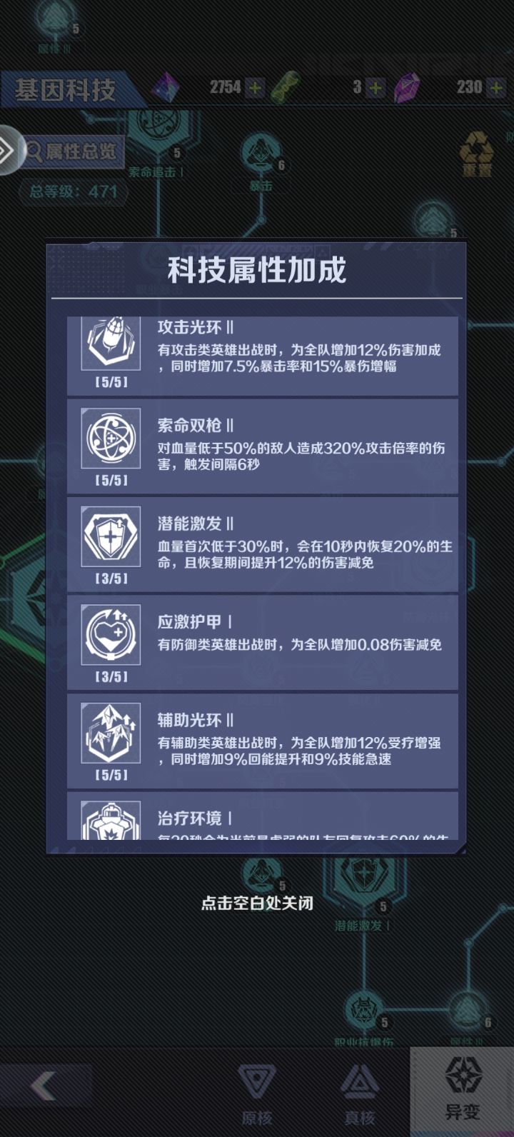 金叶没有什基因没有什么好说的,前两个直接全开满,第三个,第三个优先解锁攻击或者是回能,后面每天大量的体力全都消耗在了扫荡基因上,基因胶囊还是非常重要的,毕竟后面现在我基因升级必须要胶囊了,如果没有胶囊还是很难升级的,优先解锁技能,然后其次有各种百分比,比如说全英雄1%的三属性增强,其次升级这个#无声冲突