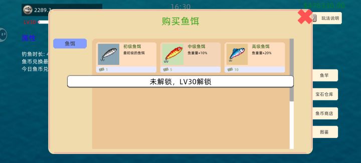 作者,快修复这个bug,我都三十级了还是没法买中级鱼饵