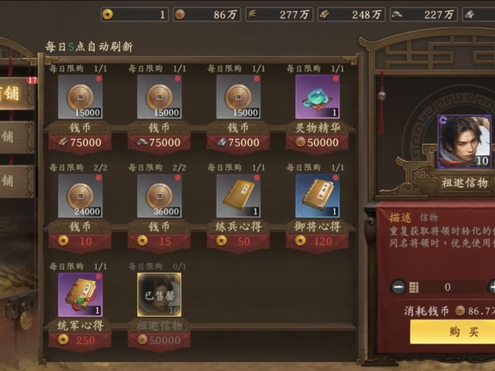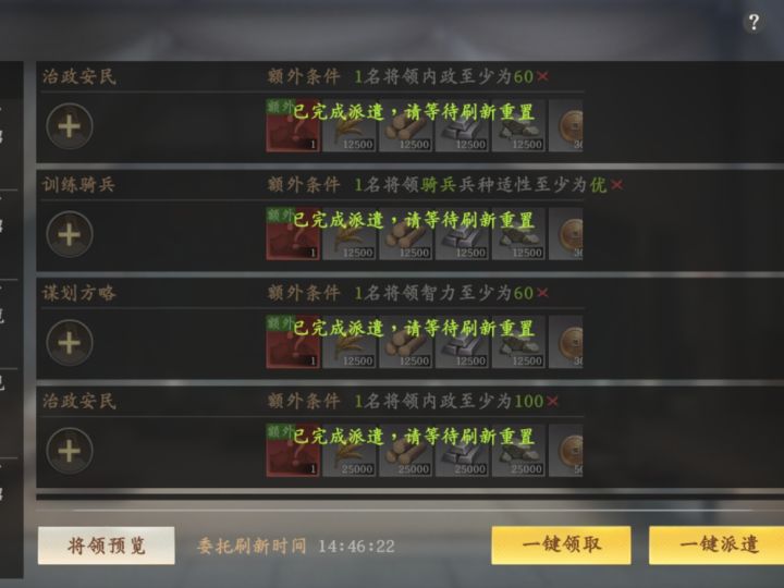 第一,商品里面铜币换紫将信物,很重要。紫将满红了多出来的还可以抽心愿。10个紫卡等于50心愿第二,委托,委托每次都会给很多蓝卡,一次大概100心愿值了。10天可以抽一次心愿抽卡。运气好会出赵云。第三,养马跟打营地,赛季末可以选4个装备或坐骑保留。打一下好装备留到下一个赛季用。第四,打城,出生州的空白城跟关口首占奖励50黄金记得全部拿下。第五,刷积分,很多人都满1700了吧,还有没满的,我说