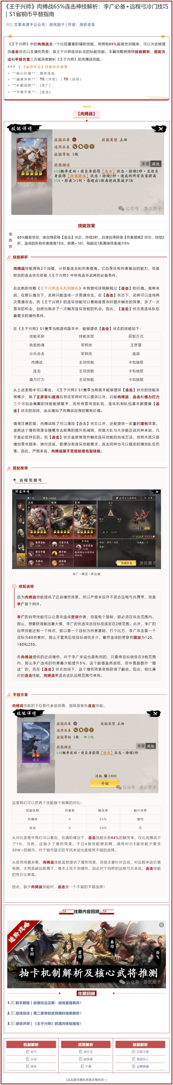 《王于兴师》中的肉搏战是一个比较重要的辅助技能,其拥有65%超高发动概率,可以为武将提供连击状态以及增伤效果,是王于兴师连环队伍的标配技能。本篇攻略将围绕技能解析、搭配方法和平替方案三方面深度解析《王于兴师》的肉搏战技能。#王于兴师 #王于兴师攻略