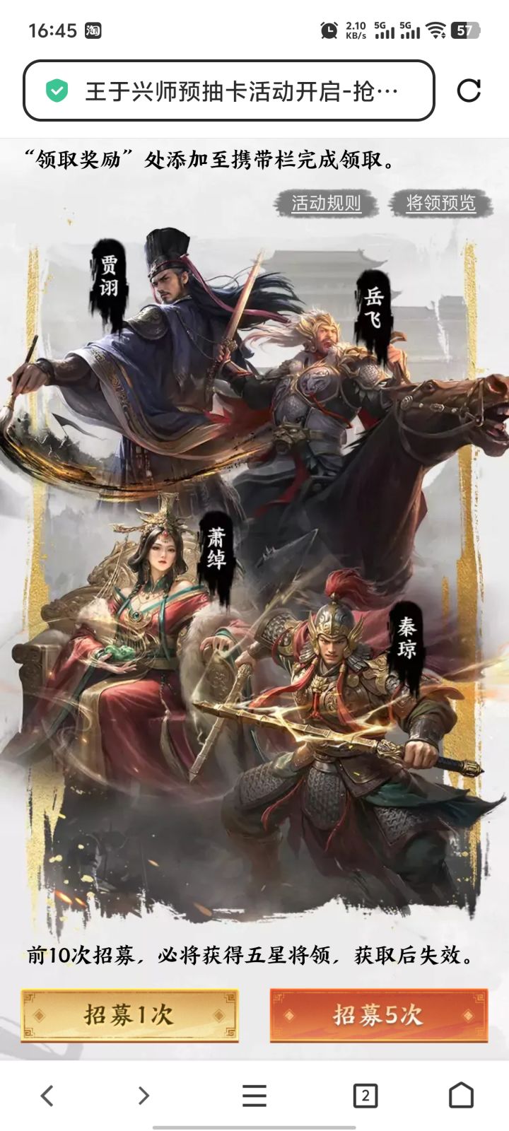 https://wyxs.duoyi.com/m/act/2024/cards/?code=153558958#王于兴师哦 点我领五星上将潘凤