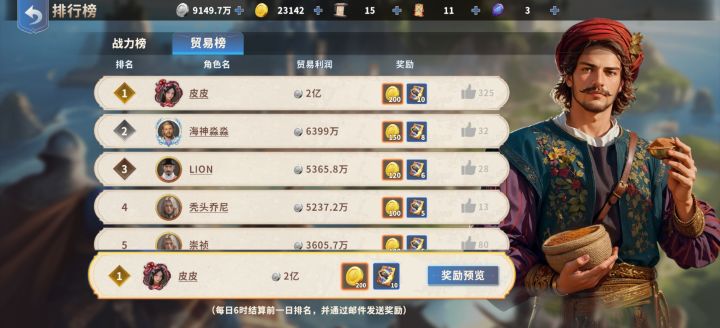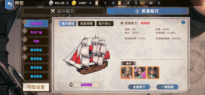 新版本开了新船长,9阶船,后面还有10,11阶,本想等有了9阶再做一些实验再来发的,但看到很多玩家进了前线就因为卡银币而寸步难行导致弃坑,我就把我的贸易经验分享一下,不说让你银币自由,但也能解眼下困境。首先贸易银币=基础利润×各类加成×暴击效果基础利润=载重利润+魅力利润贸易然后我把贸易船长我大致分为三类:第一类基础型:姐妹花,唐,达伽马,12星哥伦布第二类加成型:郑和,庞赛,麦哲伦,迪