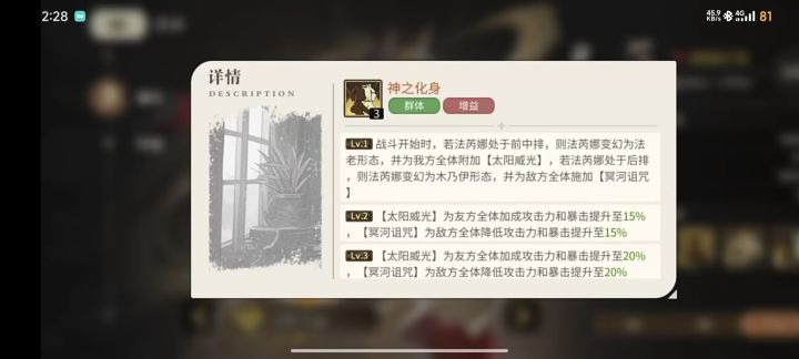 其实可以通过神使系统快速增加大量战斗力,只需保留狮尾兽的碎片留着升级,其余橙使紫使蓝使,碎片通通分解掉,用给的羽毛提升等级,就可以快速增加战斗力,除了狮尾兽别的橙紫使都用处不大,后期也都会上红色神使,刚好也可以让你快速增加战斗力解锁星灵树另外,差个几万战斗力也可以通过把队伍里的低星换成高星狗粮,然后把高星狗粮拉满等级,也可以快速增加战斗力(要记得在布阵里面完成上阵哦)完成了星灵树升阶,就可以重生