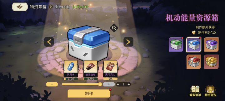 这期活动实际上可以兑换的东西并不多,这边推荐一下自选神使→阵营石→招募卷→浮星典→卓越箱子→普通箱子→三系狗粮一定要留一些活动币用来购买(饮用水和速溶咖啡)物资筹备其实不用纠结先制作那个,因为第三种材料是不同的,前两种商店可以无限买,所以大可不用担心欧皇邀请码 真人好友 可以聊天头号玩家35260a6f05b6c4#游戏攻略