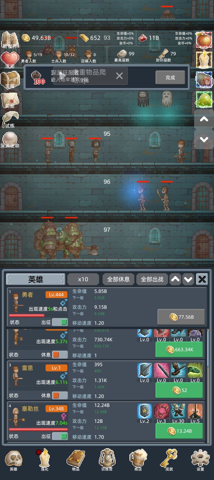升级勇者和4号,手动多可以直接升勇者,太上头了