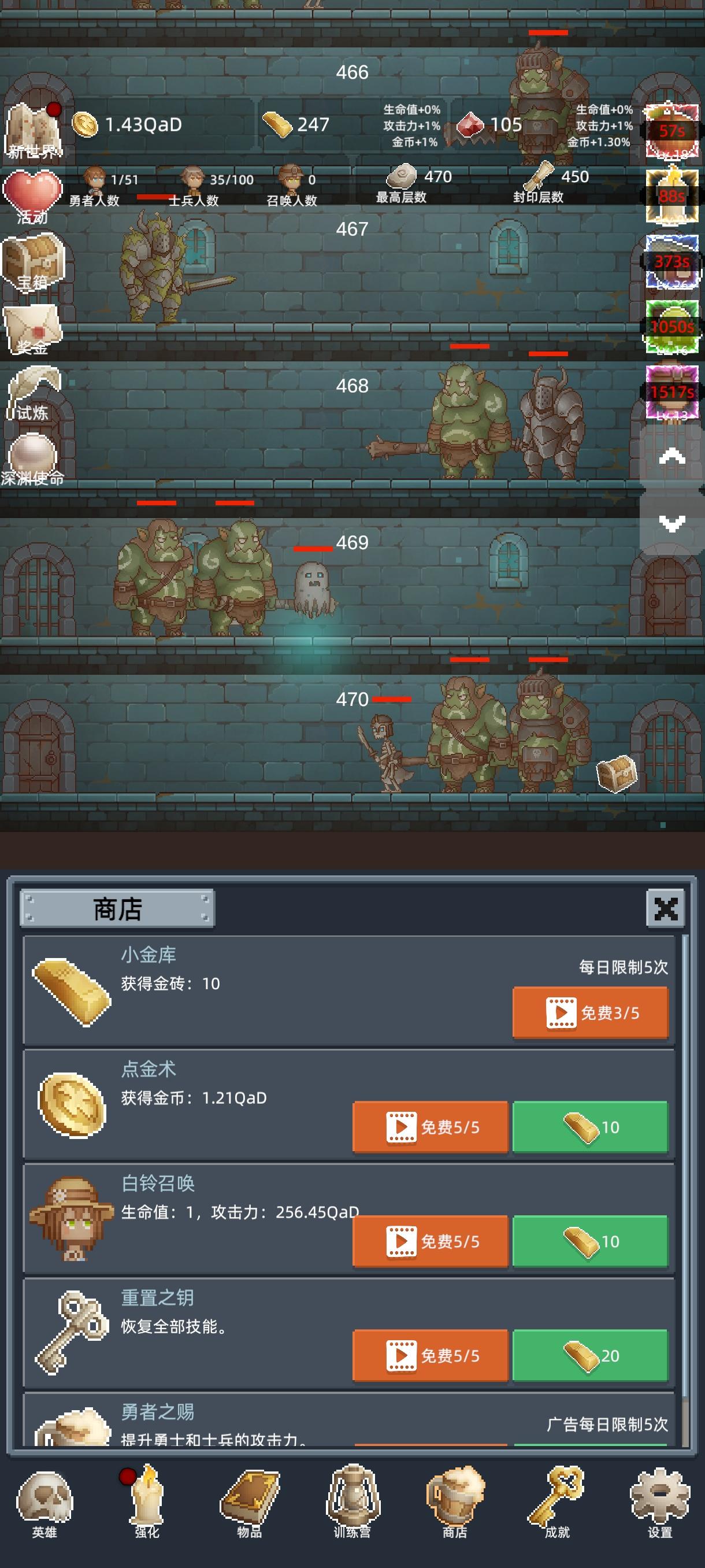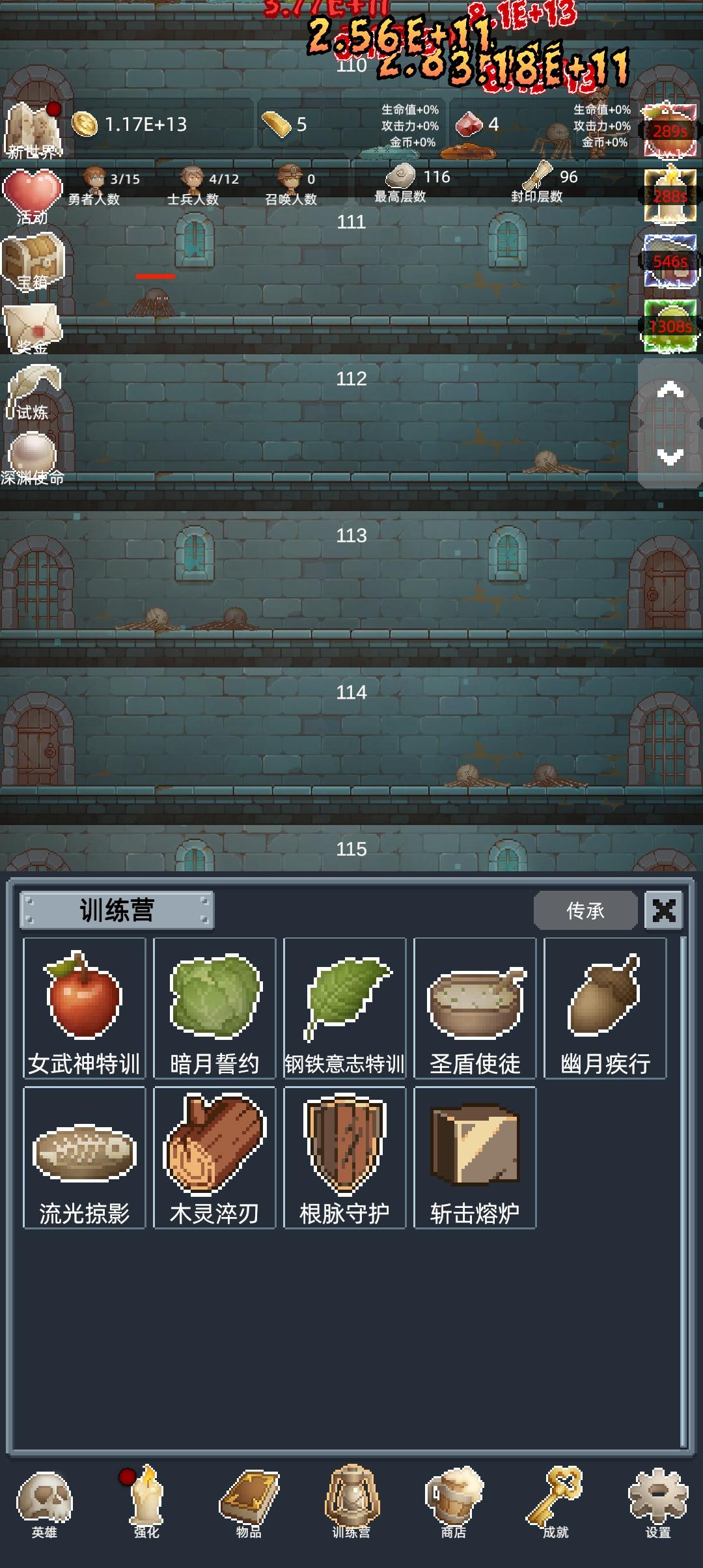 游戏通过多次转生,获取多种物品搭配进行爬塔