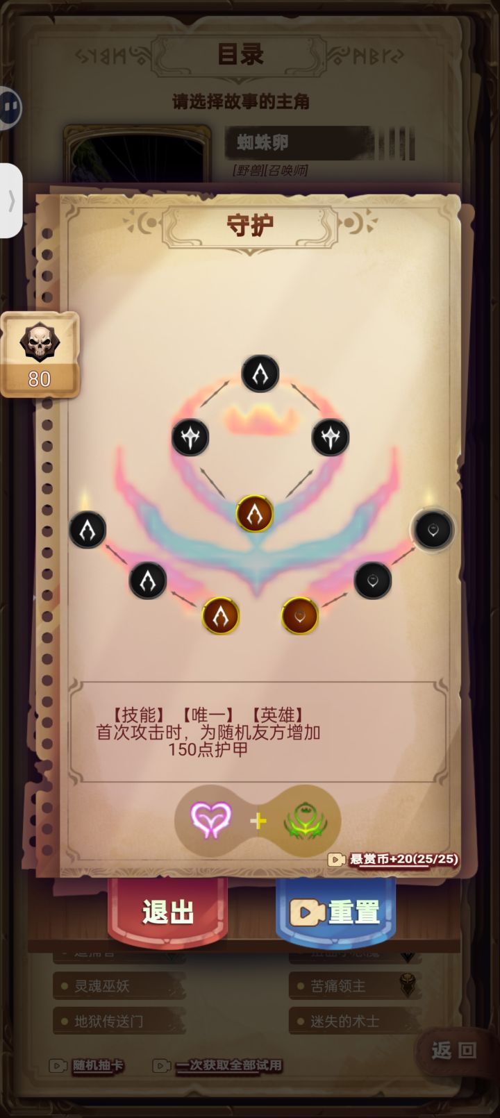 当英雄时,给的被动连军团都没有(可能是我倒霉没刷到?),给的攻速,攻血,攻击/技能影响对象,乃至格挡都没有什么用啊,因为一登场就不动也抗不了伤害,10秒就变成小蜘蛛了。增加的属性也是,点了和没点基本没有区别。