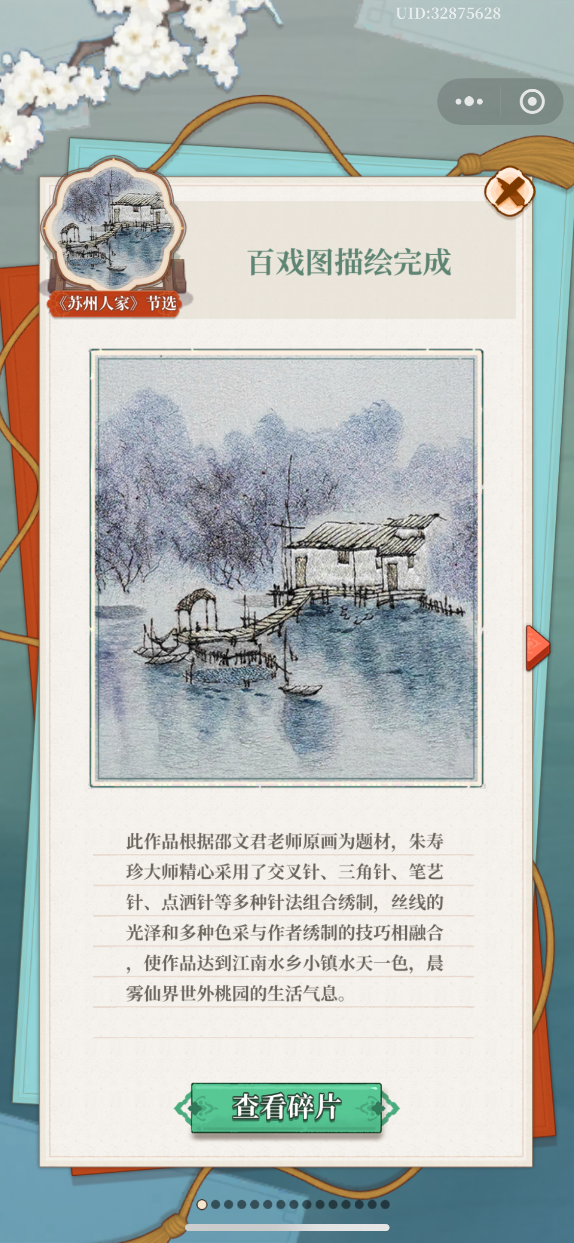 在这次非遗苏绣联动纪录片的创作中,我们倍感荣幸,得以与国家级非遗项目(苏绣)代表性传承人,朱寿珍老师展开一场深入的对话。 朱老师独创性地将“乱针”与“齐绣”融会贯通,针法精微,设色典雅,形神兼具。她成功将世界美学的开阔意境,化入苏绣的经纬传统,开创出一种独树一帜的艺术境界。 [表情_期待]以针为笔,以线为墨,为中国刺绣艺术开拓出崭新的美学维度。 镜头之外,她的指尖始终与丝线相伴。 [表情_开心]这