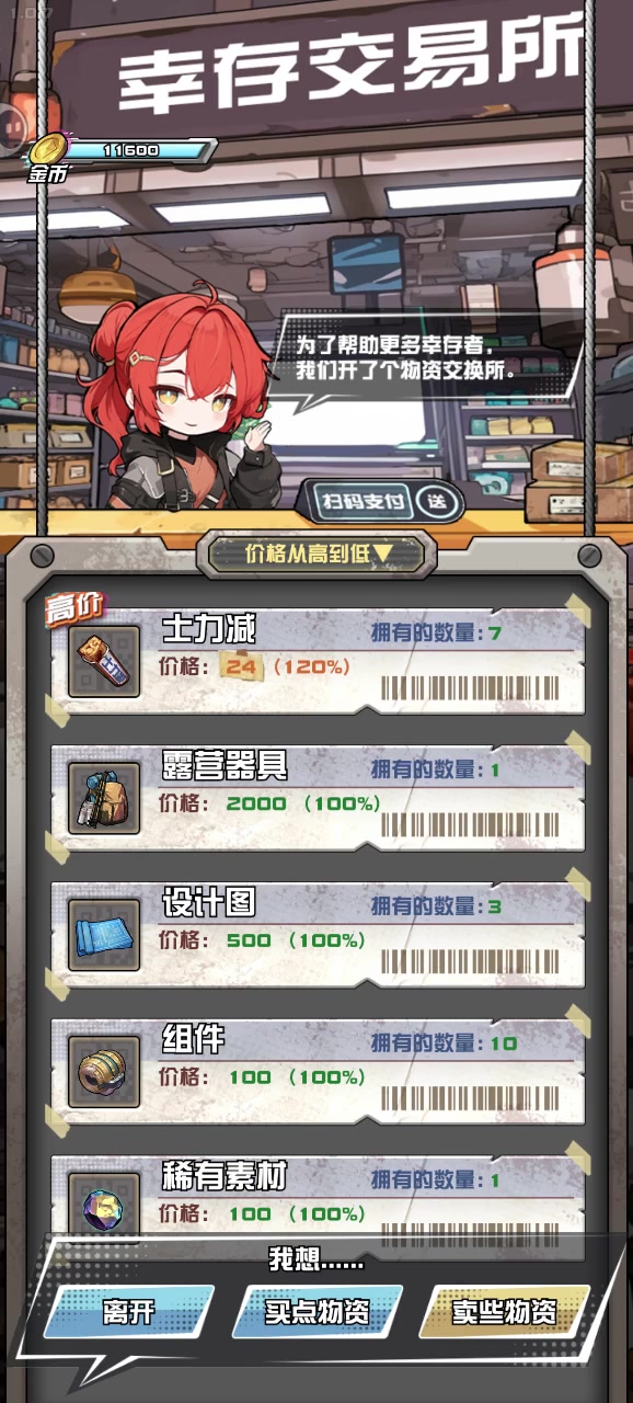 1.先跟着做完剧情,之后进入到“骇入”界面,看广告获取点券,之后进入“商店”来购买抽奖代币。2.进入抽卡界面,选择“欧皇挑战”进行抽卡,不比太执着于6星卡,获取初始资源和角色来作为启动资金,海伦必须拉满3.按照下图进行配置,男枪可以自动消耗弹药打僵尸,女枪可以叠自信来应付最终的boss4.出发后,建议的跑商路线是地图最左面的商店--社区来回往返,其中商店可以低价购入大量物资,社区可以高价卖出