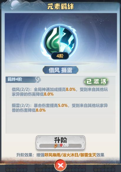 御天推荐异兽异兽是伴随着突破到化神的一个新的板块,今天就为修士们推荐关于御天该如何选择异兽。异兽分为三种属性,风火雷,当同属性异兽上场超过两只就会激发元素羁绊。摄雷:暴击伤害提高,受到来自其他玩家的异兽伤害降低。坐火:会心伤害提高,受到来自其他玩家的异兽伤害降低。借风:全局神通加成提高,受到来自其他玩家的异兽伤害降低。目前异兽可以上阵四个,所以我们最多可以激活两种元素羁绊。伴随着到达