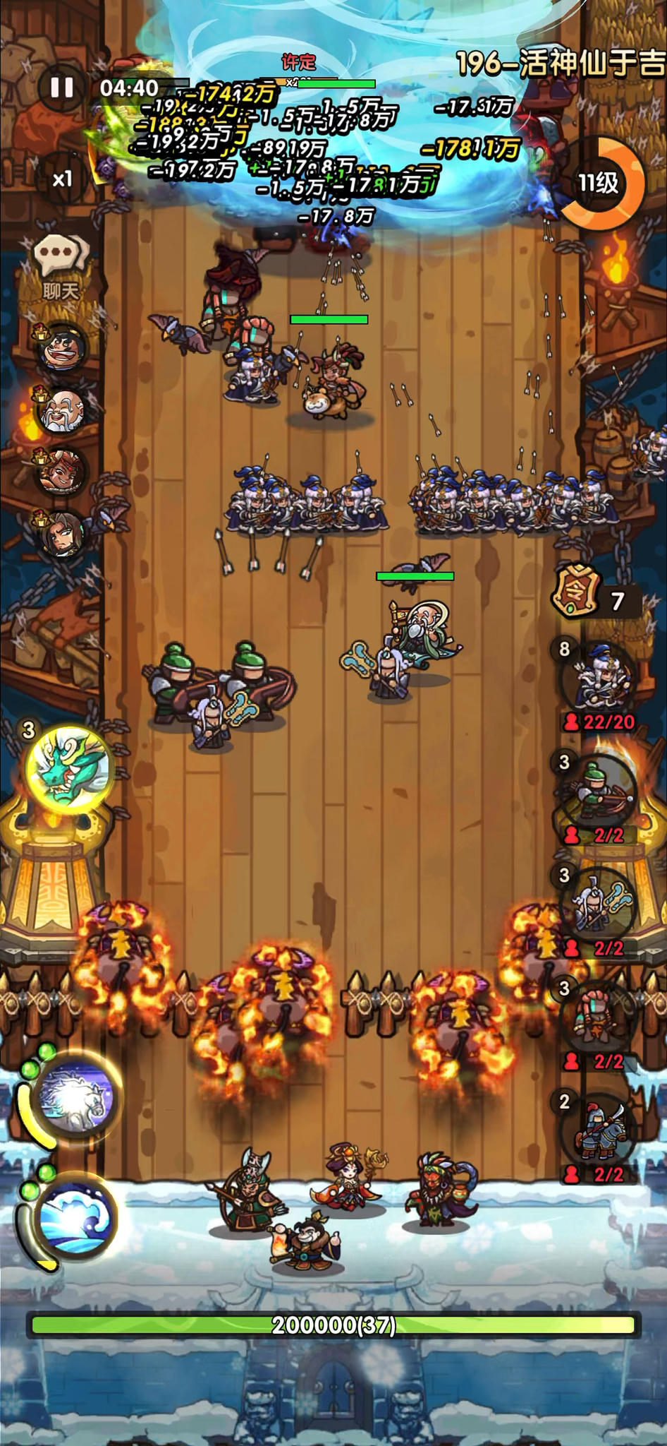 196关小怪暴击才能打出伤害,不吃火百,精英不暴击就回血,这关是必带弩兵减疗的,爆民弓,风百,重百,马超基本刚需,最后boss点燃靠近卫潘凤,配合风百击杀,这一关驭兽师虎之狂暴有奇效