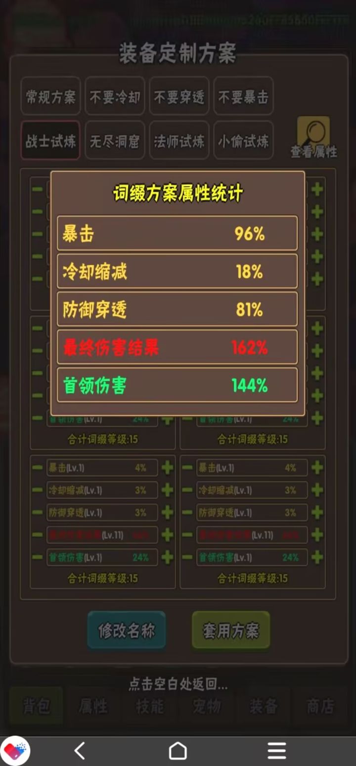 装备词缀(不看开花)7群玩家:半俗半雅。战士射手的法师的小偷的每天能打三次一次最高5%