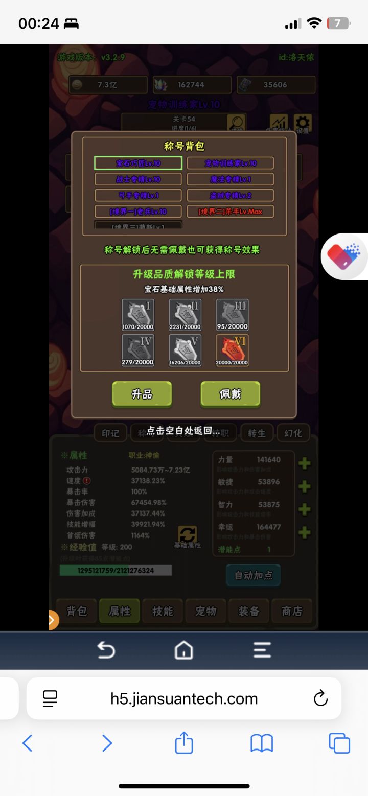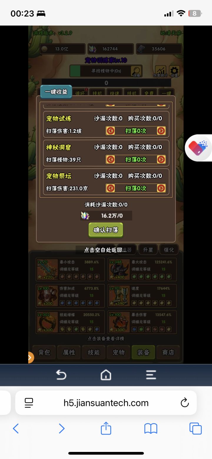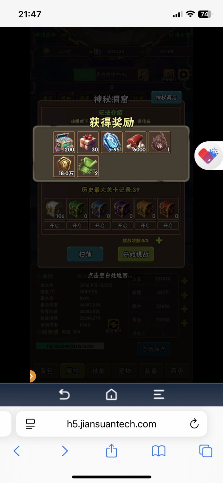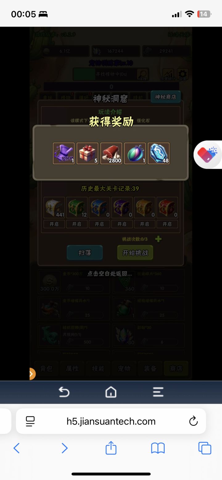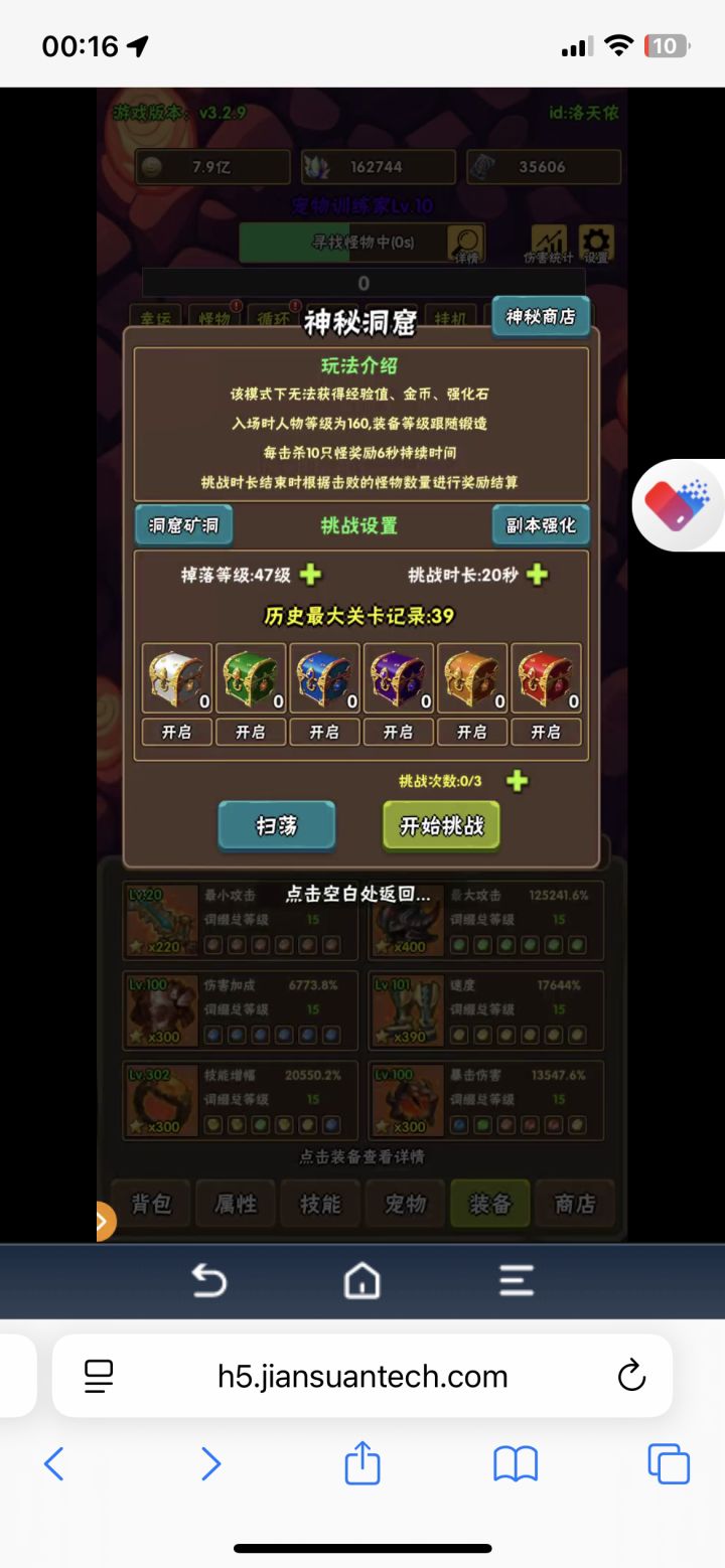 1.挂机了一个月,把宠物神器拉满了洞窟差不多直接可以打到38-39,但是新版本煤球更新了加等级上限了,我估摸着洞窟差不多也40,因为挂机的太久了,挖矿的属性也稍微上来了,洞窟和秘境优先时间然后等级2.现在下一个目标是拉6个三天赋宠物,现在继续挂机,然后再去打洞窟看看能打多少3.最后,如果你不氪金那就不要换神器,尽可能开出来如果你氪金,要买两个礼包,那就先换三件套,然后再买第二个升级挖矿等级,