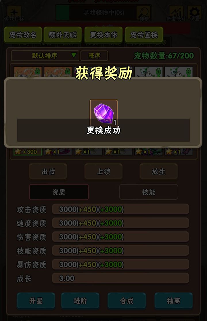 通过称号和地精攻略相比大家已经知道资源的主要获取来源了我们就要开始实操战斗力提升系统了,那就是宠物这个很简单,就是合成2500资质,2.5成长,吃资质果子到500,提取魂石,再给7天宠物升星你看懂了,恭喜你,你就毕业了宠物系统很简单朴实无华,也是熬时间,300星双天赋指日可待(双天赋就是3000资质.3成长.吃资质果子到1000,然后提取技能石头就完事了)就比如我的图,狐狸狼,也就是狐狸