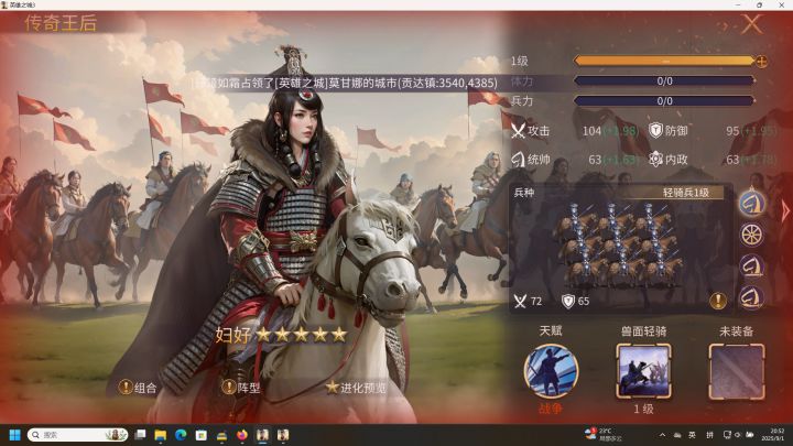 随着文明远征一的到来,游戏中开放了19个新的五星英雄。新英雄的总体强度要远高于老英雄,但相互之间也有高下之分。这篇文章我将为大家讲解文明一新出的五星骑兵中的后三位。一 传奇往后 妇好妇好,中国历史上有据可查(甲骨文)的第一位女性军事统帅,同时也是一位杰出的女政治家。(一)基础版面数据攻击104(+1.98),对比新的骑兵英雄,比高丽太祖106(+2.05)少了两个基础点,与狮子王104(+