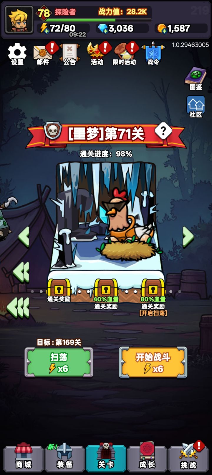 1.福利领取渠道兑换码功能要通关第 5 关解锁,在设置界面输入,能领钻石、体力或金币等道具,多关注官方公告找兑换码。邮件是福利核心,每日体力、更新补偿、活动奖励都会发这,记得每天上线先看邮件。公告系统会通知新版本、以及更新等内容2.福利使用技巧前期钻石别乱花,优先买体力。如果缺金币可以少买一点。每日商城免费领 1 次金币,看视频还能多领 3 次,必领满,升天赋全靠它。
