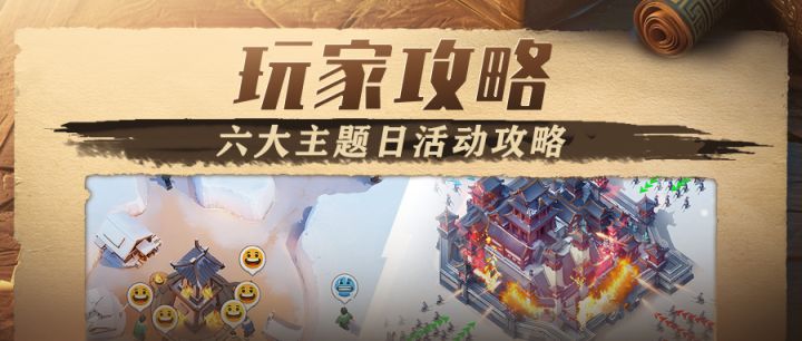 六大主题日活动可以让各位主公通过完成日常任务获取丰厚奖励今天给大家带来了高玩投稿的攻略让我们一起仔细梳理六大主题日活动吧一、活动简介【营城起邑】、【办学究理】、【夜以继日】、【兵精粮足】、【清理流寇】、【厉兵秣马】6个活动分别对应6个主题,每个主题日有2天时间。完成该主题下的任务即可获取积分领取达成积分奖励,每个活动达成相应的排名还能获得丰富的排名奖励。二、各活动积分获取来源三、