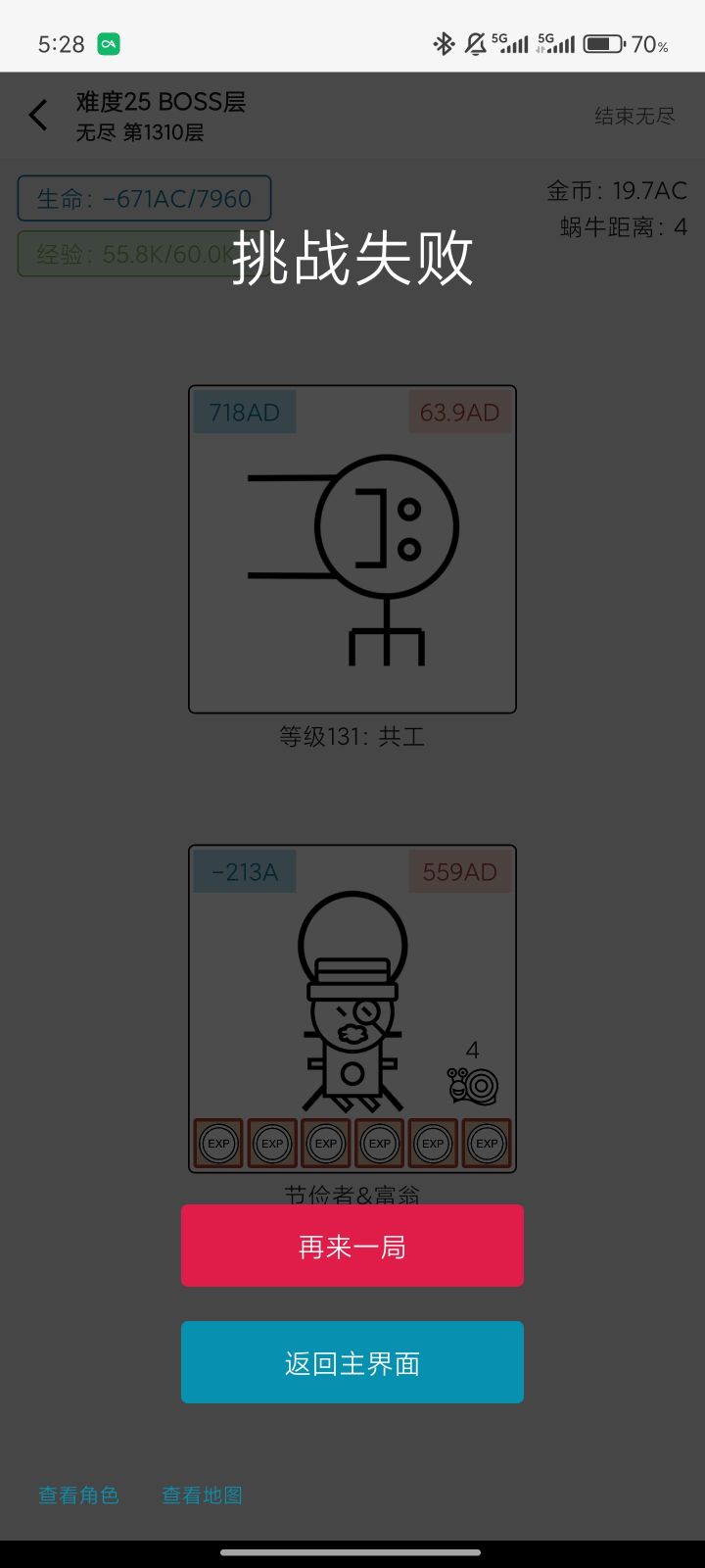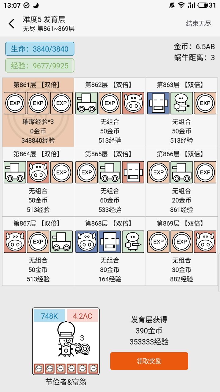 【角色】司命(最强战力)+富豪(无限金币) 【注意事项】: ①蜗牛只能打到第十一只❗️第十一只血量已经高达27万,再翻3.5倍绝对打不过,所以注意控制好商店刷新次数。 ②每次打BOSS看名刀剩余次数。6红名刀提供最高24次伤害免疫,如果感觉下一个BOSS打不过,就及时刷新商店,提战力。 ③打200关最终BOSS时,要把攻击力端提升到至少20000以上,否则打不过。 ④装备全部买名刀即可,