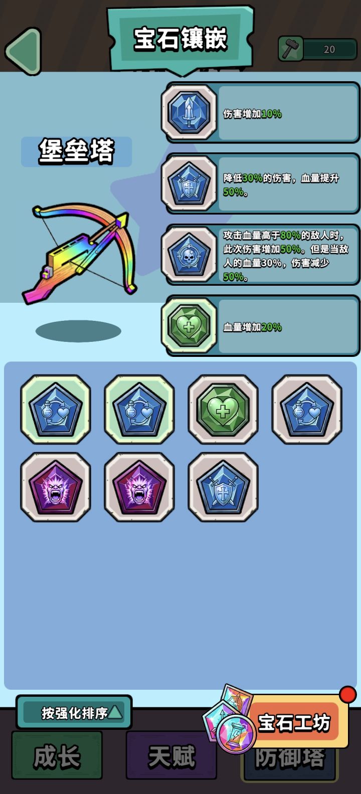 兵营镶嵌的宝石这么容易活动吗?我觉得打无尽的话还是需要壁垒塔然后叠血量抗伤。兵营塔要么去前排当炮灰刷金币,要么躲在壁垒塔后面输出。