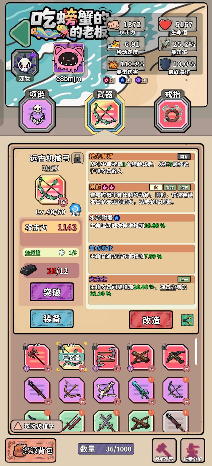 囧萌时刻!辛辛苦苦换来的复活武器,确发现这个速射驽的攻击力有点差强人意,各位大神,这个驽洗出什么词条好啊?