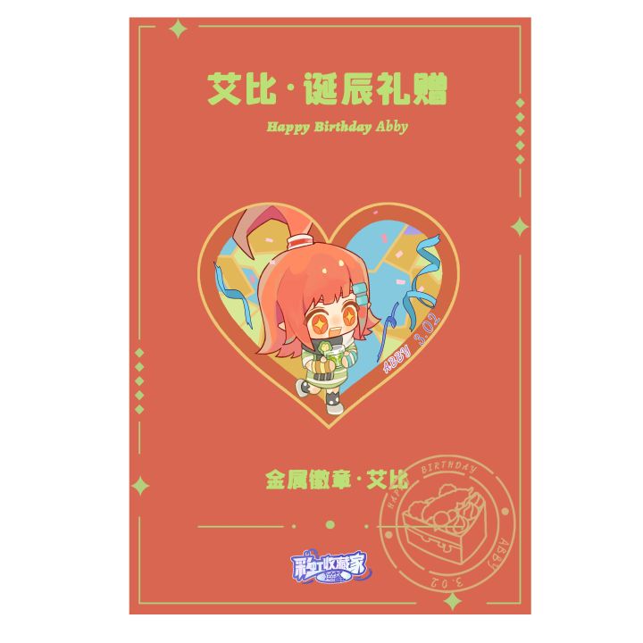 今天是3月2日,是艾比的生日哦!大家一起祝艾比生日快乐吧~* 专属「诞辰心意礼盒」内含圆形徽章*1,生日月限时上架游戏商城,售价0钻石可免费领取! * 专属「诞辰礼赠礼盒」内含色纸*1,方形徽章*1,心形徽章*1,亚克力挂件*1,立牌*2,生日月限时上架游戏商城,售价280钻石。