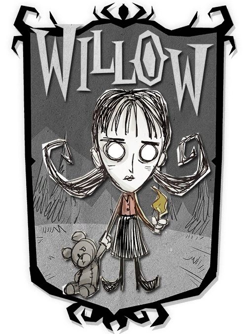 "All will bathe in the prettiest of flames."“全部都会沐浴在火焰最美的部分中。”– 薇洛薇洛(Willow)是饥荒中第一个由经验解锁的可玩角色,需要160点经验来解锁。她也是多人版饥荒的可玩角色之一。她是一个痴迷于火的年轻女子。特殊能力薇洛的特殊能力就是拥有薇洛的打火机。当开始游戏时,她的背包内就会有打火机。打火机的光比火炬微弱,但燃料是无限。它