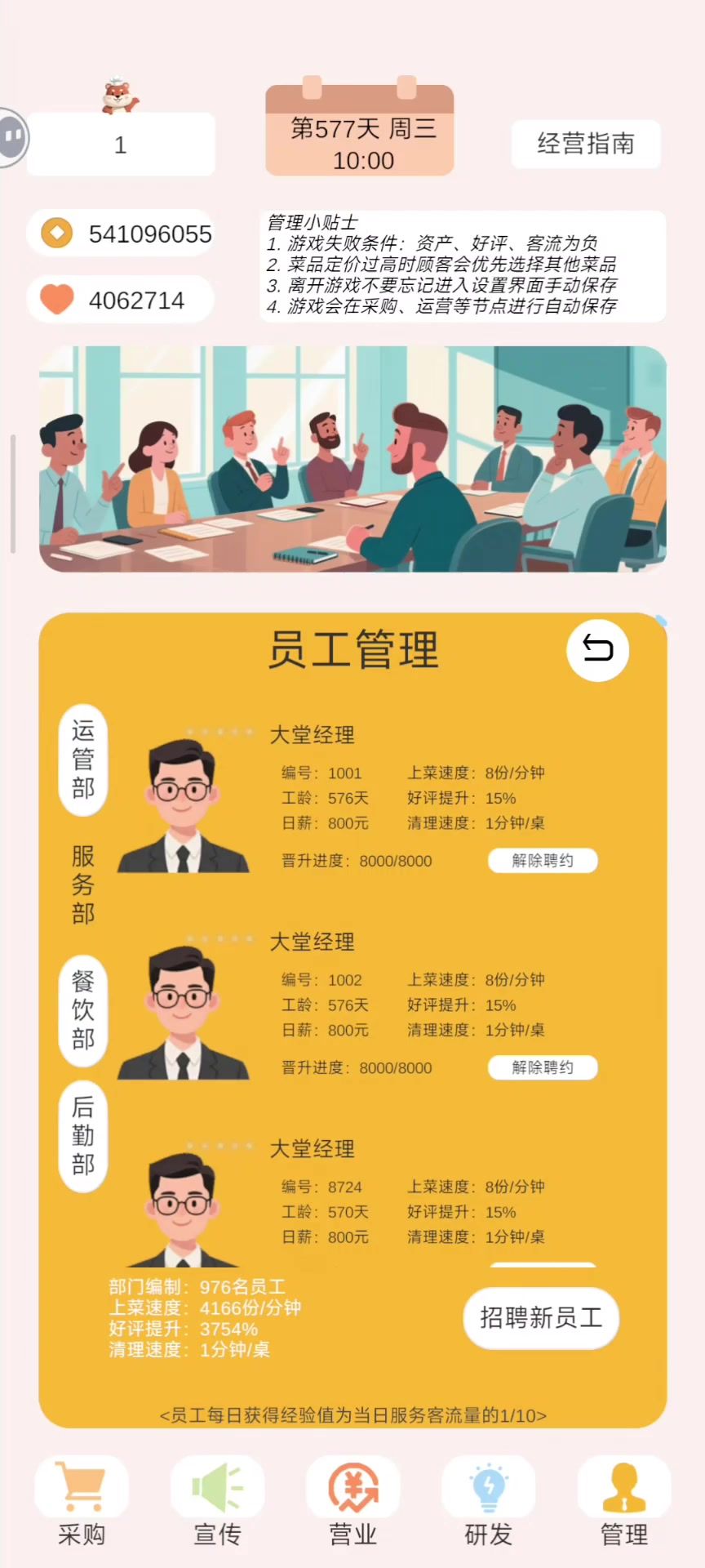 员工这里如果一直点招募员工,再次点确认会卡。 点的多都会卡, 如果只点两下,会直接招募两个员工