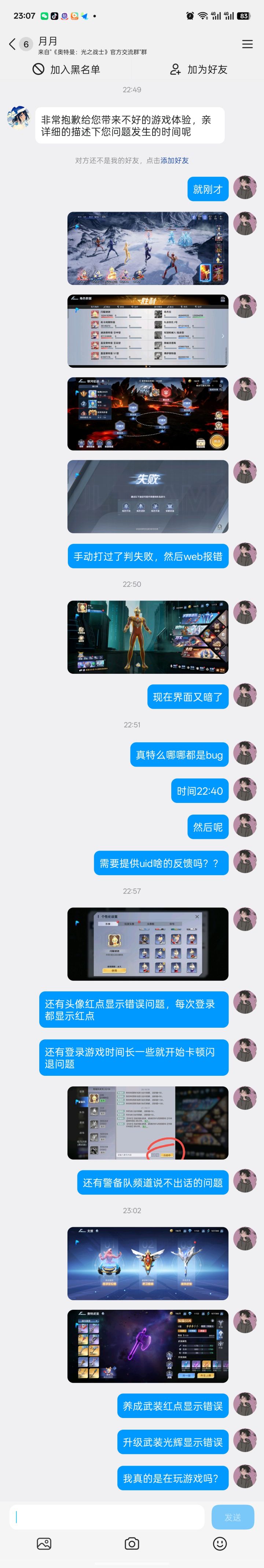 亲爱的光之勇士:《奥特曼:光之战士》公测即将开启,您的每一次战斗都至关重要。为了共同守护这颗星球的和平,特此开设本帖,诚挚征集您在冒险中遇到的任何问题与建议。反馈时,请参考以下格式:【游戏bug反馈格式】角色ID:角色名:厂商品牌:华为/小米/OPPO/VIVO等设备型号:系统版本:网络状态:联系方式(手机号/QQ):付费相关问题(购买商品及时间等信息):BUG发生大致时间